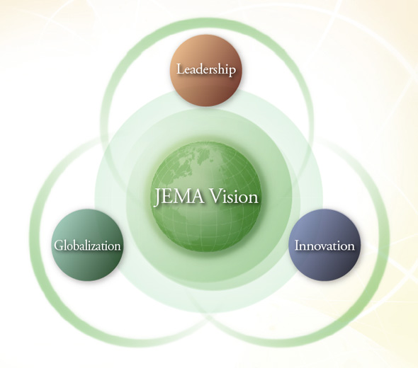 With this vision in mind and from the three key viewpoints of Leadership, Innovation and Globalization, JEMA will provide further development and problem solutions to the Japanese electric machinery industry by fulfilling its mission and role.