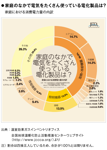 家庭からの二酸化炭素排出量 家庭における消費電力量の内訳