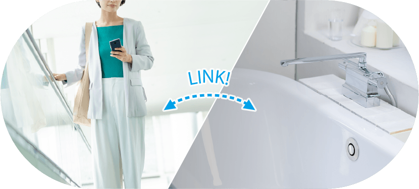 スマホからの遠隔操作に加え、浴室換気乾燥暖房機と連携しお風呂を一括操作で快適な状態にできます。