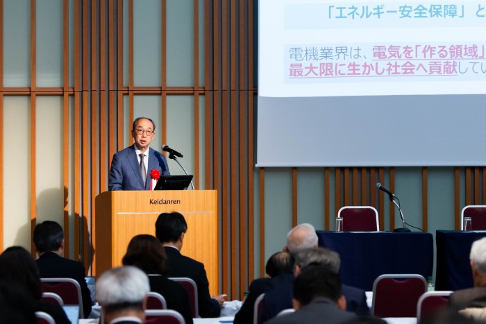 『エネルギートップ講演会』は、日本動力協会の副会長を務めるエネルギー5団体(電気事業連合会、日本ガス協会、石油連盟、カーボンフロンティア機構、日本電機工業会)の会長が一堂に会して、原則3年に1回開催される講演会です。今回漆間会長からは、エネルギー安全保障と脱炭素社会を両立するための当会の取り組みを紹介しました。