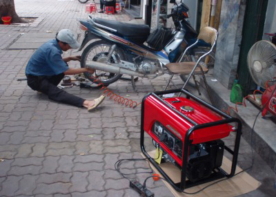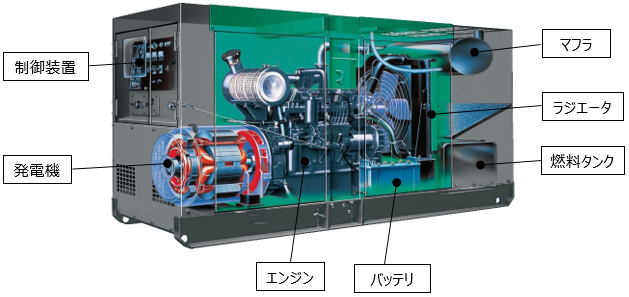 ガソリンエンジンまたはディーゼルエンジンを原動機としており、他の原動機と比較して熱効率が高いので燃料消費が少なく経済的で、燃料のガソリンや軽油は容易に入手することができます。また、他の原動機と比較して始動・停止が容易に行なえますので消防法に係わる防災用途を除く非常用発電機としても使用されます。