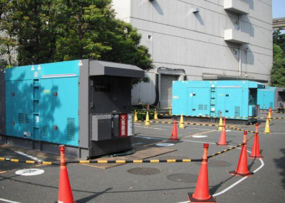 可搬形発電機は設置台数の適切な選定により、必要な電力に見合った効率的な台数で運転することが可能な機種があり、工事の工期によって適切台数で運転することができ経済的です。また、メンテナンス時や故障発生時に他機によるバックアップができるため安定した電力の供給が可能です。