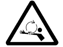 運転中は、回転部分やベルトに手を近づけないでください。万一、巻き込まれたときは重傷を負うおそれがあります。