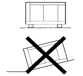 設置場所が凹凸の場合は、本機の下部に角材を入れ水平に設置してください。