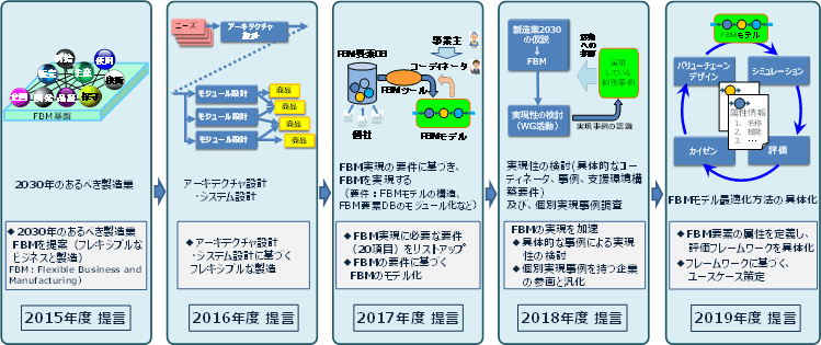 これまで発行した製造業2030では、2030年のあるべき製造業の姿を、市場環境に合わせて製造プロセスを組み替え、フレキシブルにビジネス環境を構築する「FBM(フレキシブル・ビジネス・アンド・マニュファクチャリング)」という将来像のコンセプトとして提言してきました。
