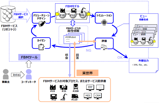 FBMが実現することにより、製造業はよりフレキシブルにモノの調達、製造の工程を変えることができ、情勢の変化に追従が可能となります。今回の提言書では、企業をこえて、部品、調達先、製造ラインなどの属性情報を共有し、即座に最適化が可能になるモデルを定義し、その属性を選択・評価できるフレームワークを規定しました。