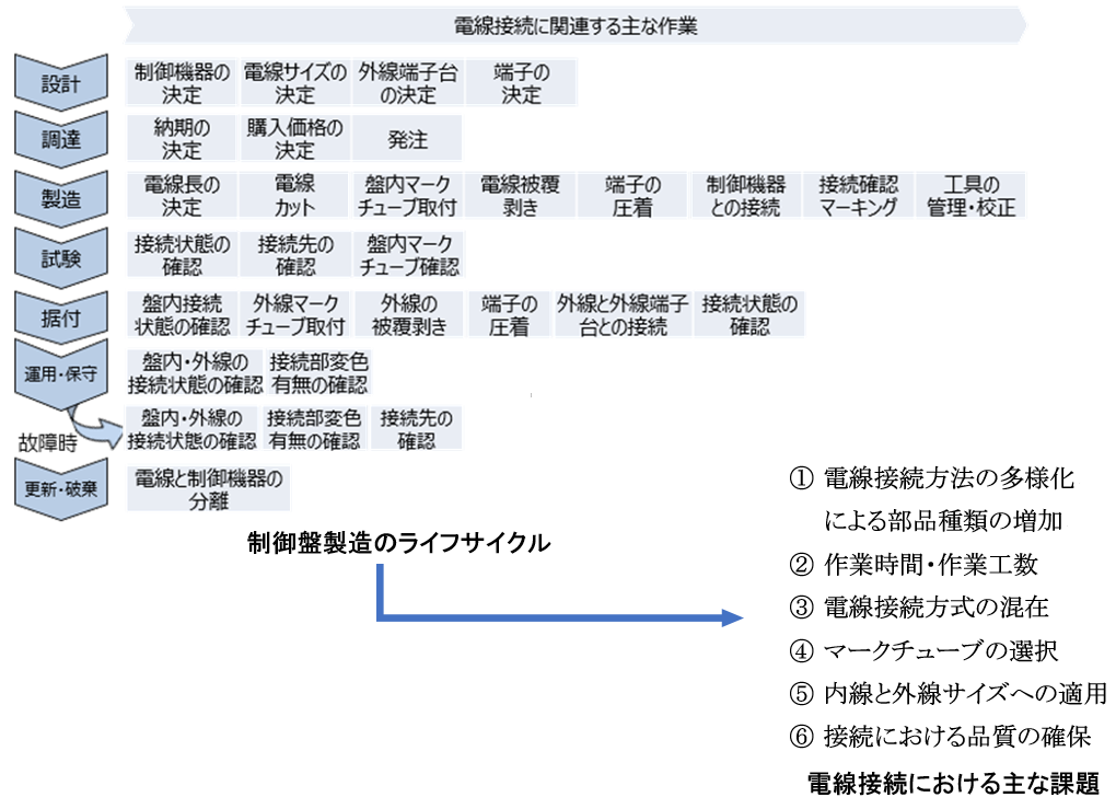 図3:制御盤のライフサイクルを踏まえた、電線接続における課題