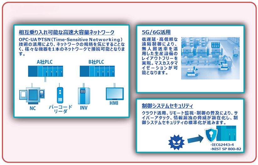 このような産業界の潮流を受け、PLCに対しては、さまざまな機器と“つながる“ためのネットワーク対応とこれに付随するオープン化、ワイヤレス化、制御システムセキュリティの強化などのニーズがさらに高まっており、それらに伴う“高付加価値化“の傾向が今後も拡大・発展してゆくものと期待されています。