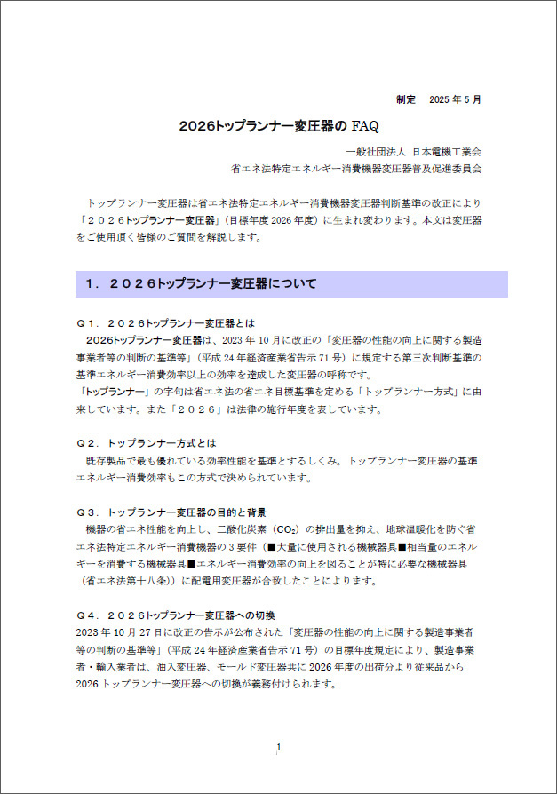 トップランナー変圧器第三次判断基準 2026年度スタート