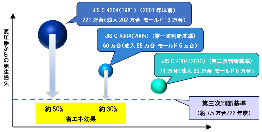 これら旧型変圧器の更新促進は、地球温暖化の環境問題として早急に取組んでいかなければならない課題と言えます。
