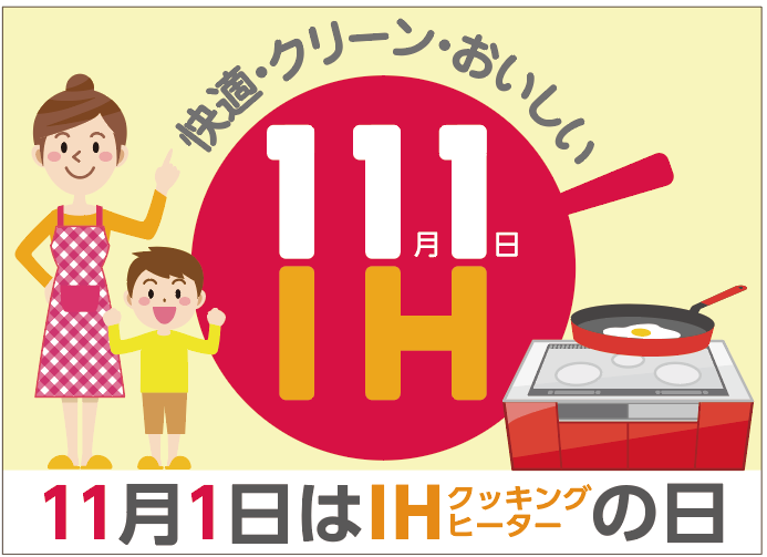 日本の食文化を豊かにすることを願い、「IH」の文字にちなんで、11月1日を『IHクッキングヒーターの日』と定めました。