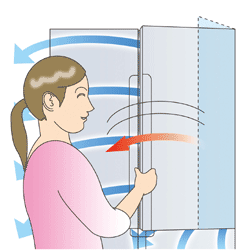 冷蔵庫の周囲を、ほとんど隙間がない状態で設置されると、庫内の食品から奪った熱を放熱しにくく、その分冷えにくくなり、電気のムダになります。設置に対する放熱スペースは、冷蔵庫によって異なります。取扱説明書にてご確認ください。