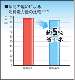 左右、上部の隙間をあけて設置した場合、隙間をあけずに設置した場合と比べ、約5%省エネになった例があります。※2