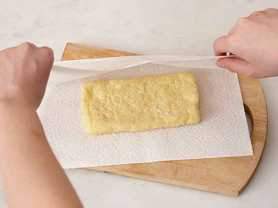 (強く絞ると油揚げが破けるのでご注意ください)。