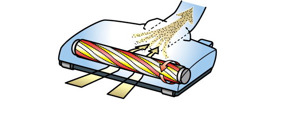 ヘッドに内蔵されたモーターの働きでブラシを回転させ、ゴミをかき取る。 |