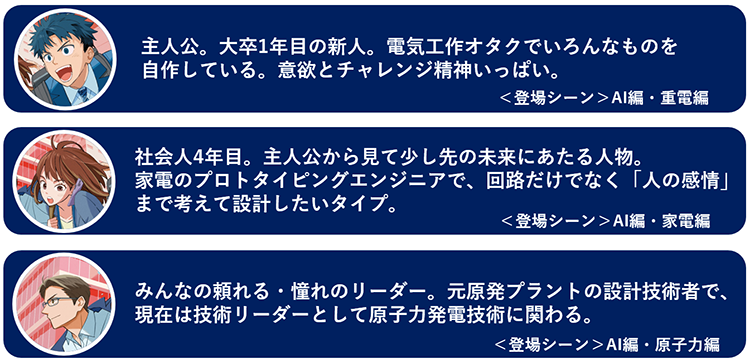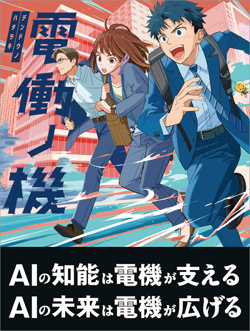 「電働ノ機」は「AI編」「重電編」「家電編」「原子力編」の4シリーズで構成し、JEMA会員企業の幅広い活動領域と、それぞれの仕事の魅力が伝わる内容としています。また、キャッチコピーをシリーズごとに設定し、小説の表紙と帯をイメージしたデザインとすることで、イラストと文字の両面からメッセージを届けています。