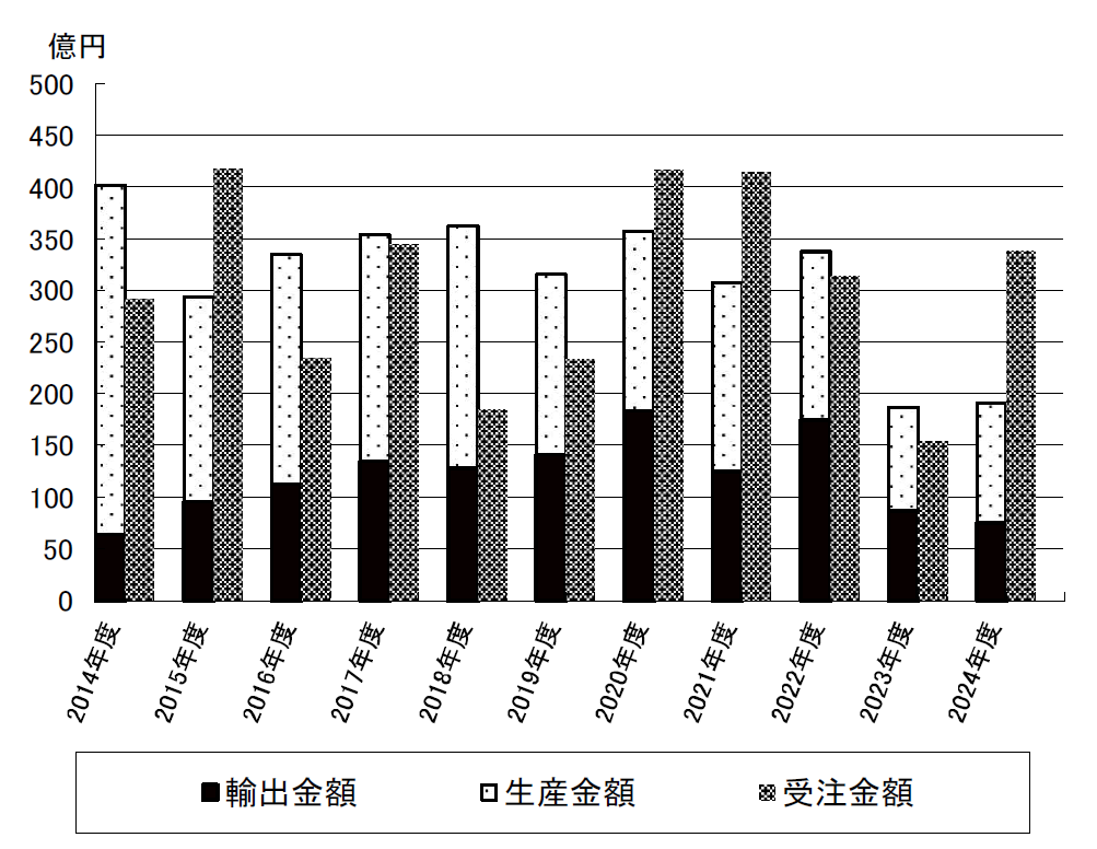 - 生産・輸出・受注額は産業用、研究用、サービスの合計値