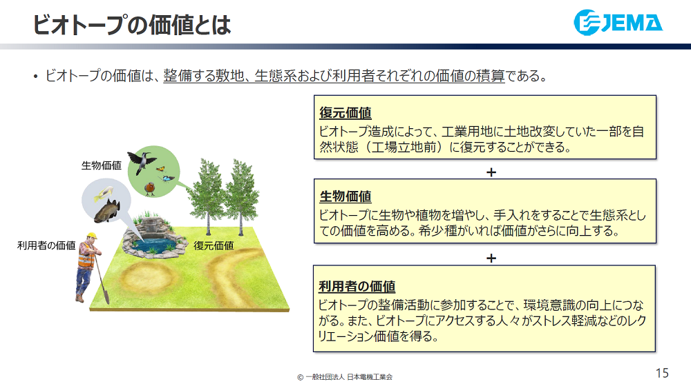 事業所におけるビオトープの価値を見える化するためのプロセスと算定方法ガイドです。