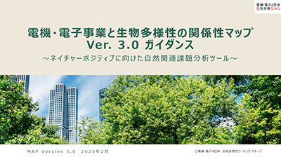 電機・電子業界の企業活動と生物多様性との関係性について、事業・製品ライフサイクルステージ別に整理しています。TNFDが推奨する開示ステップに準拠した構成に再構築するとともに、内容も含め大幅にアップデートを図りました。「依存と影響」 「リスクと機会」「事業アクション」のマテリアルな項目を抽出する上で役立つツールです。