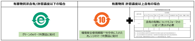 第1ステップ ⇒ 製品に含有される特定有害物質と、環境保全使用期限の表示を行う