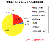 素材、製品製造、製品輸送、使用、回収、廃棄・リサイクル簡易算出ツールでは、図1および図2に示すように、各段階のCO2排出量、排出量比率のグラフを自動で作成します。
